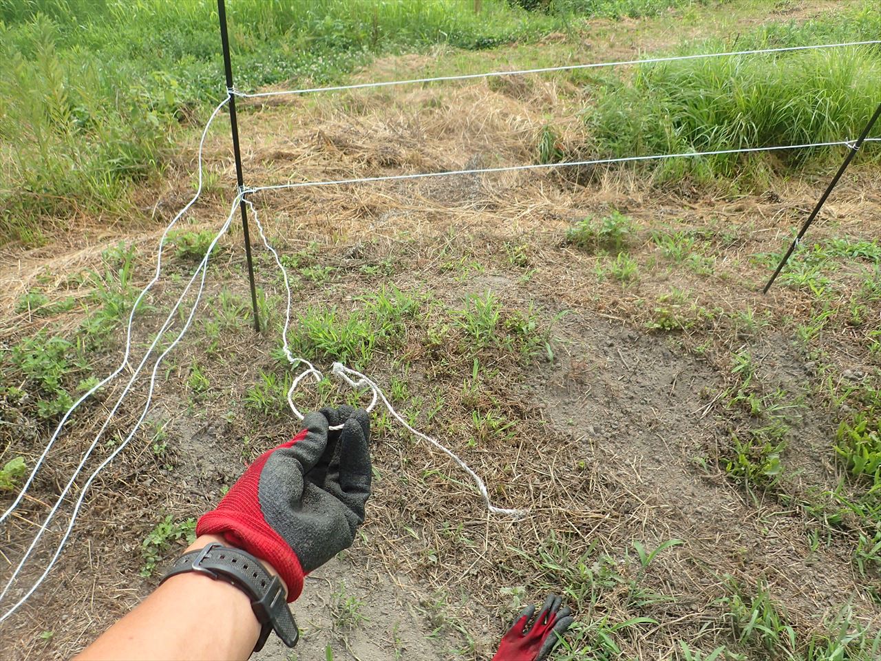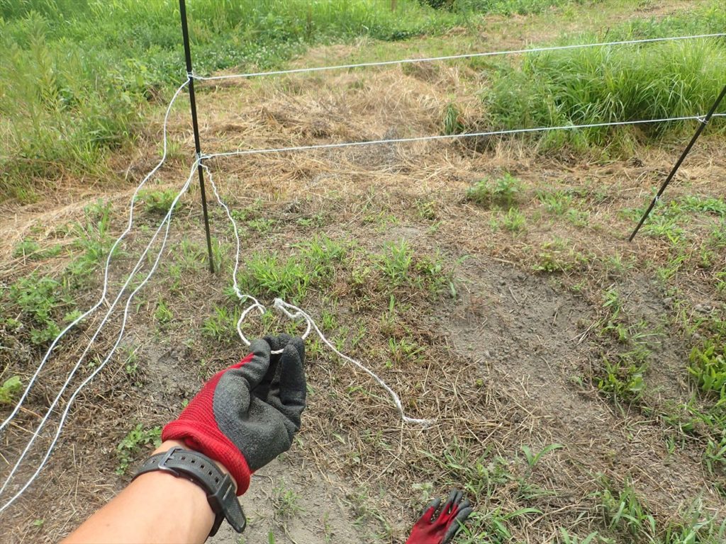ちなみに電気柵の1段目は地上15センチ、2段目30センチ、3段目60センチと非常に低く設置しているため、1週間に1回の草刈りが必要で、なかなかしんどいです。